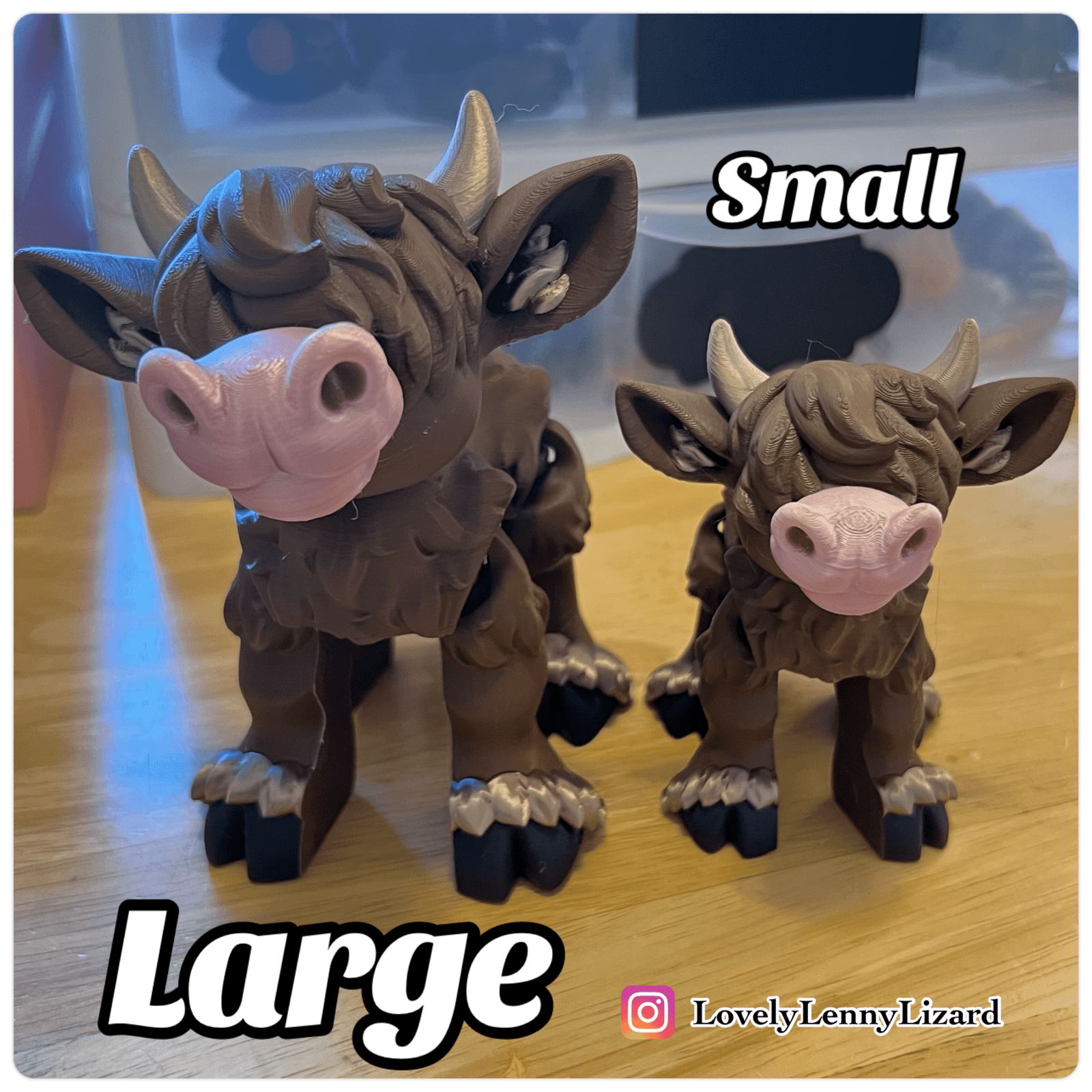 This is a 3D PLA Multicolor printed Highlander cow. It is fully articulating including the legs, head, and tail. Each print should be identical. Please note each large Highlander print takes 1-3 days to print before shipping. If you purchase this there will be a 1-5 day printing and packing period depending on the number of orders ahead of you although we usually ship faster.