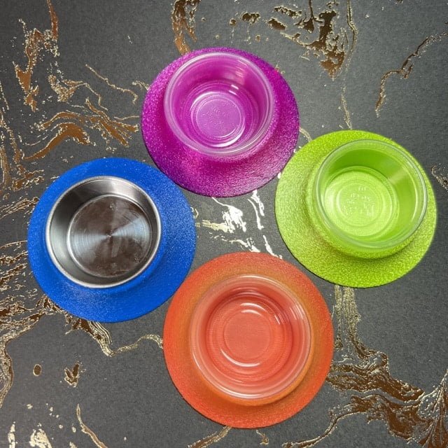 Each bowl is .5″ High, 2.6″ in circumference, and the depth of the interior is 4″. It currently comes in four different colors although we are low in stock due to its popularity in two of those colors.