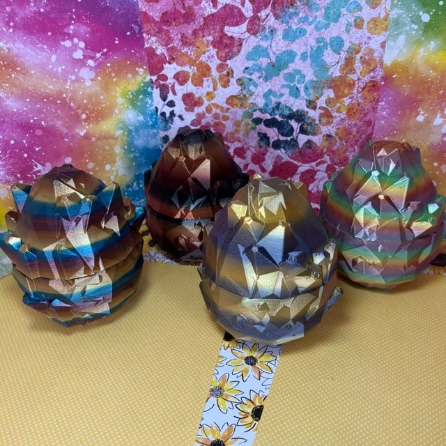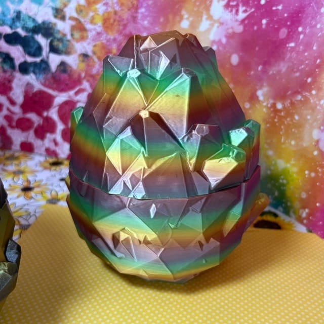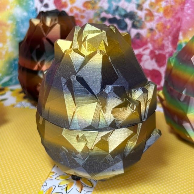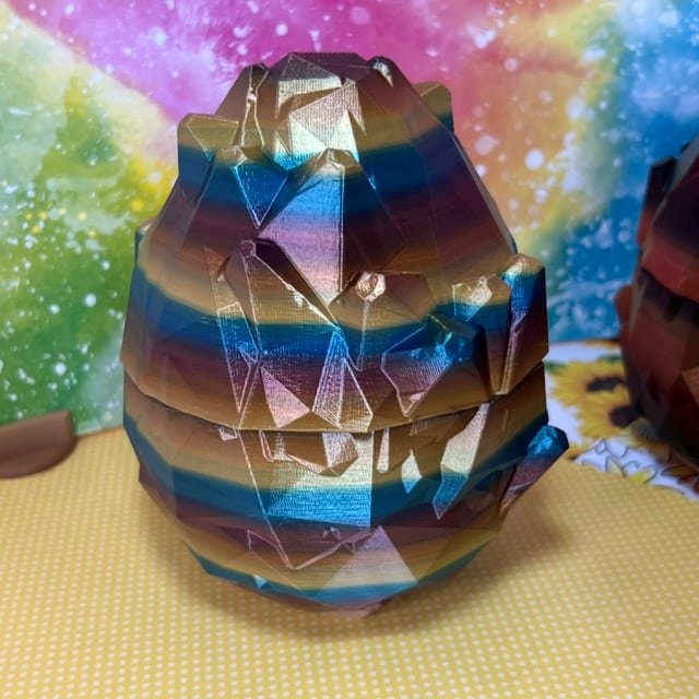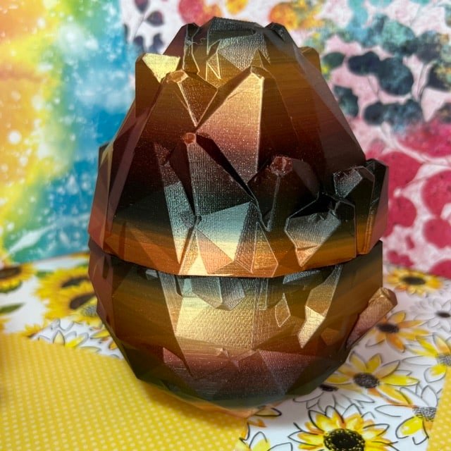 We are proud to bring you four different varieties of our 3D Printed Crystal Dragon Egg. These eggs open into a top and bottom part. We use these eggs around our home to decorate our bookshelves and to store small objects. Each egg comes with a FREE baby wyvern inside! Each Wyvern color will be a surprise. These crystal eggs are not only durable but gorgeous too! Get your eggs today before they run out!