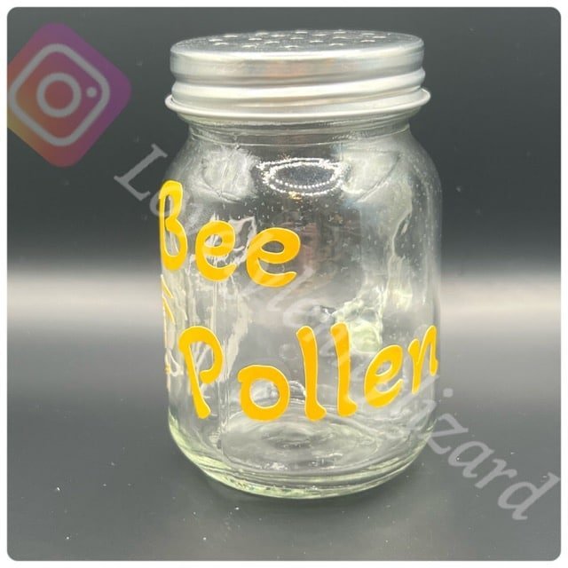 In feeding bee pollen we created a cute little bee pollen jar that is small, functional, and has the desired look. You’ll never get it mixed up with your other random yellow powders in our honey vinyl labeled jar!