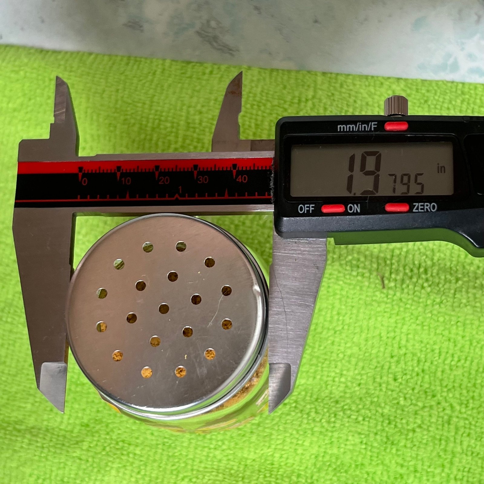Measurement of Aluminum Lid- Top Diameter- 1.7″ Bottom Diameter- 1.9″ Height 0.2″