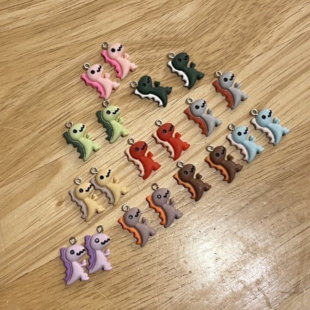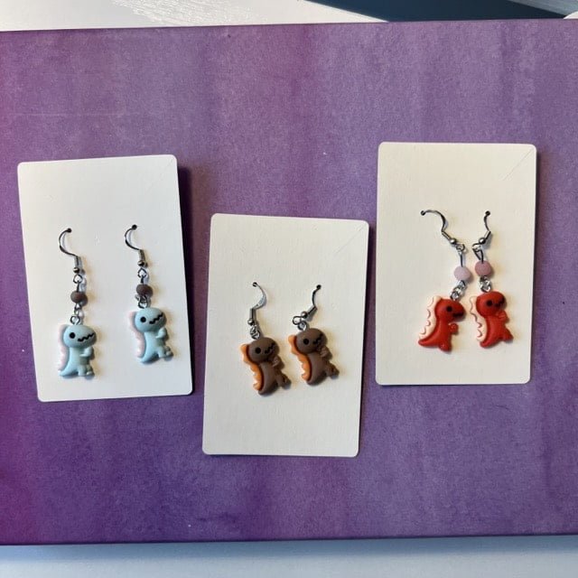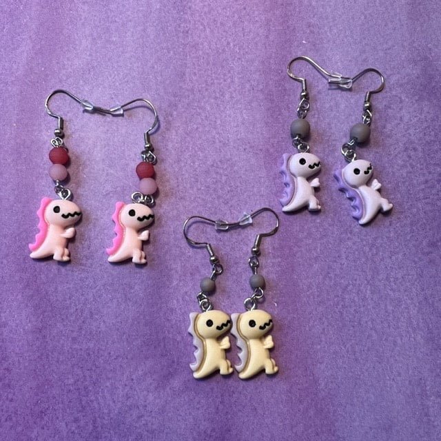 Here are ten different colors of cute dinos that can be made into pierced earrings or clip-on earrings for children. While these are listed as KIDS apparel please note I have had multiple adults fall in love with them as well! Make sure you take after Pokemon and catch them all as each color brings an additional flavor to your attire.