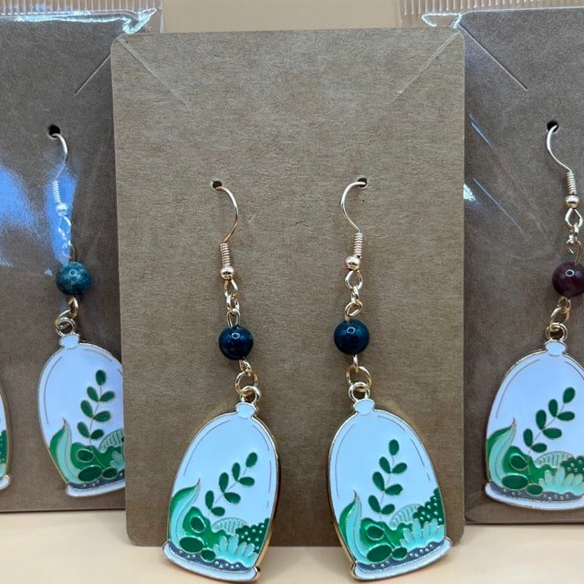Do you love plants? Do you have a friend who loves plants? These earrings are perfect for you. They look like mini terrariums on your ears! They’re a unique design with a quality feel. Get yours now before they are gone!