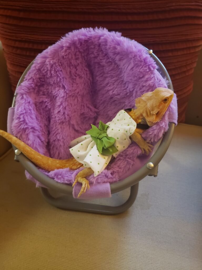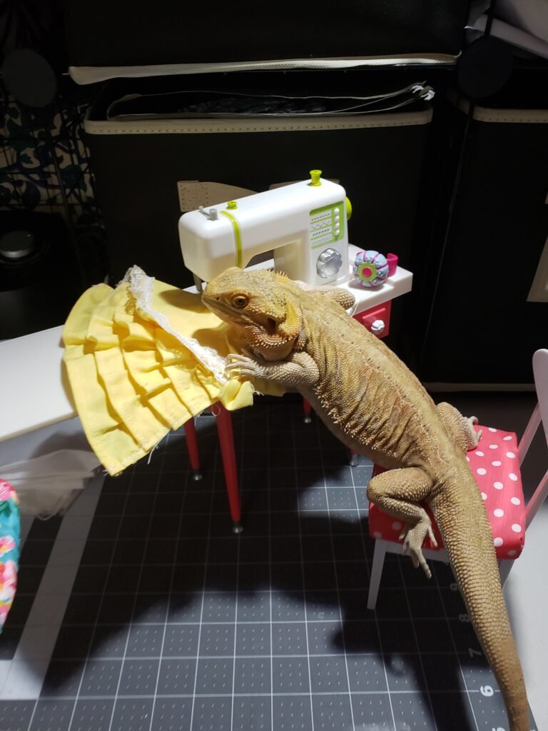 “I had the idea to make my bearded dragon a dress that Christmas with a new sewing machine I got. Upon showing my dad what I made, he said that’s really cool, you should sell that. I did some research and planned how to sell them. The Etsy was open a week or so later. Without my dad’s encouragement this never would have happened, lol. “