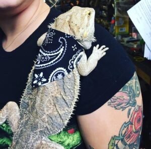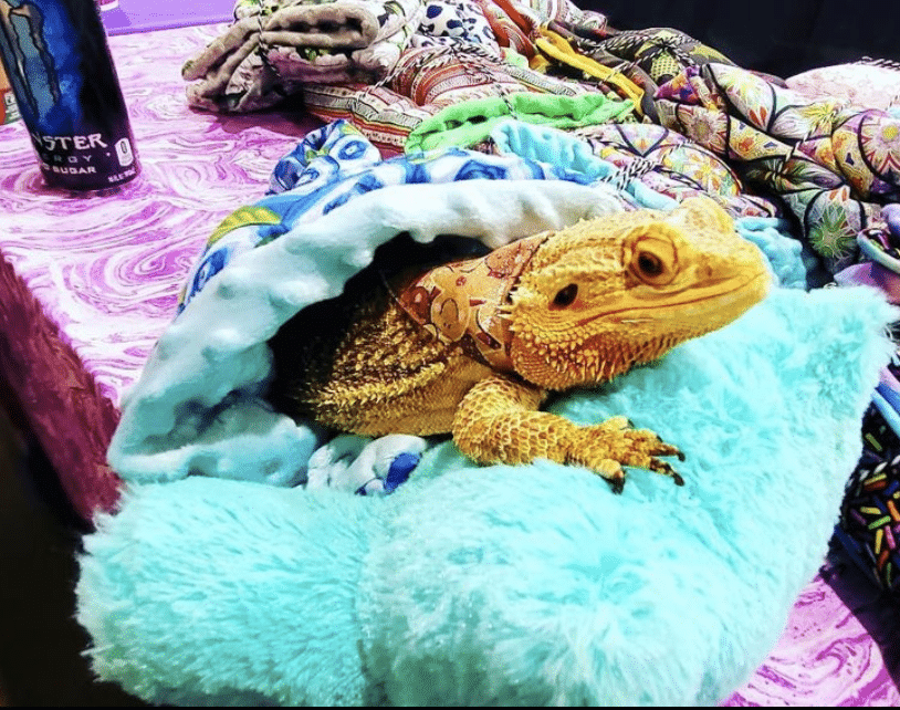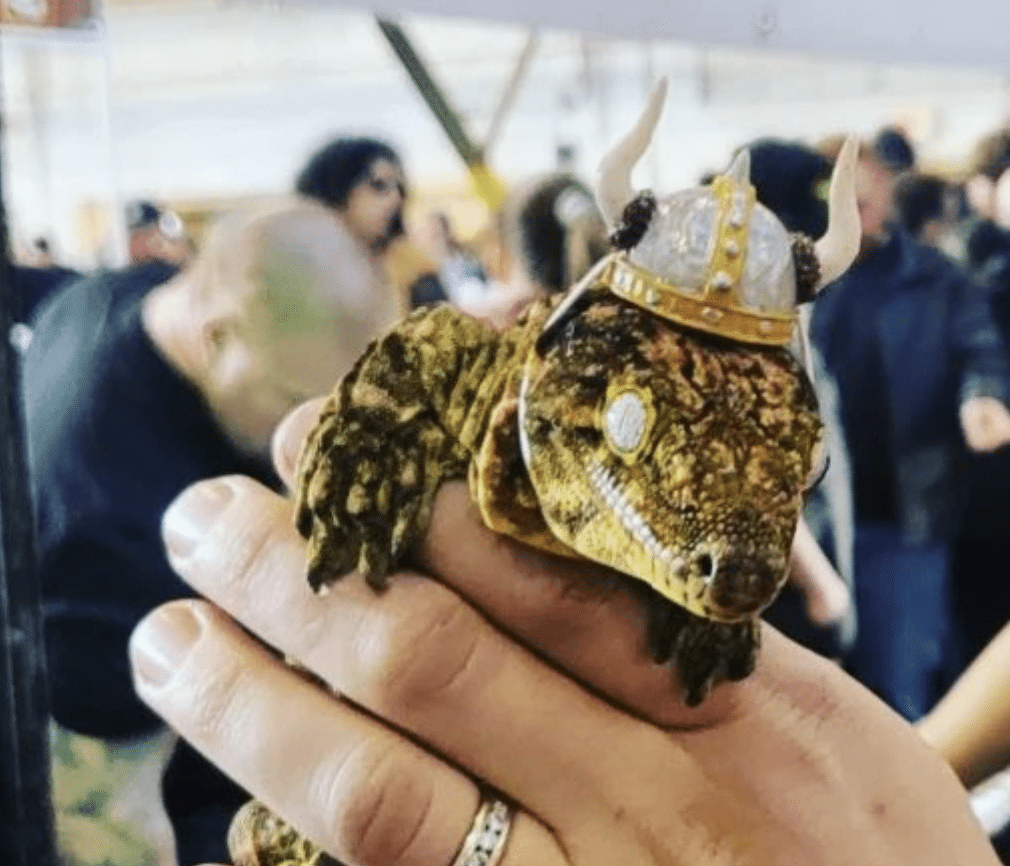 “At the time I was working at [an] exotic pet shop and had taken in a German giant who was not in the greatest shape. Over time we bonded and he was my best bud I always felt so bad none of the products in our shop could support his weight so I decided to try to make something special for him. When I first started making the hammocks I was sewing by hand and once they took off in our shop I decided to get a machine and learn how to sew on that instead and that changed everything. We started the Etsy page and then started doing all [the] different reptile shows up and down the east coast. Now we have a print farm for my hats and I have a better machine that can keep up with how much I make. Goliath was my best boy and he inspired so much of what I’ve created. Without him, I wouldn’t have done all of this.