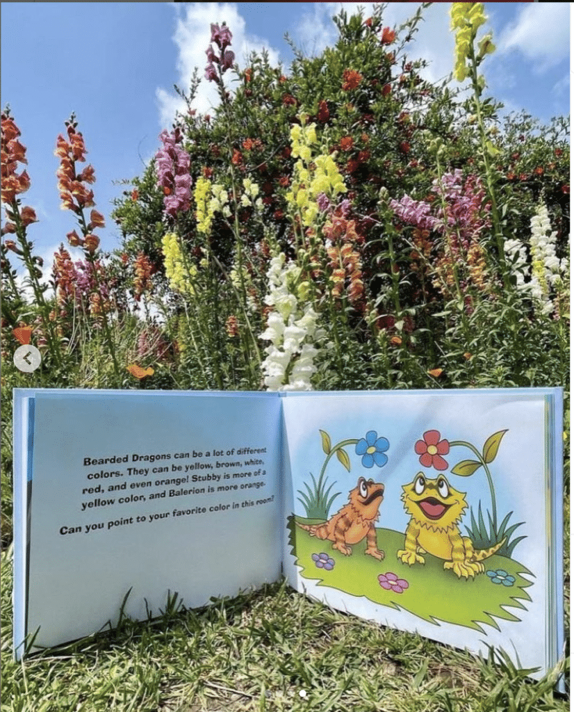 “The idea for a book about beardies came in 2018. I started off with the idea of using pictures of my real dragons in the book. I put one together at a FedEx location, actually. Then I thought about how cute these guys would look as cartoons. That’s when I went about the search for an illustrator.”