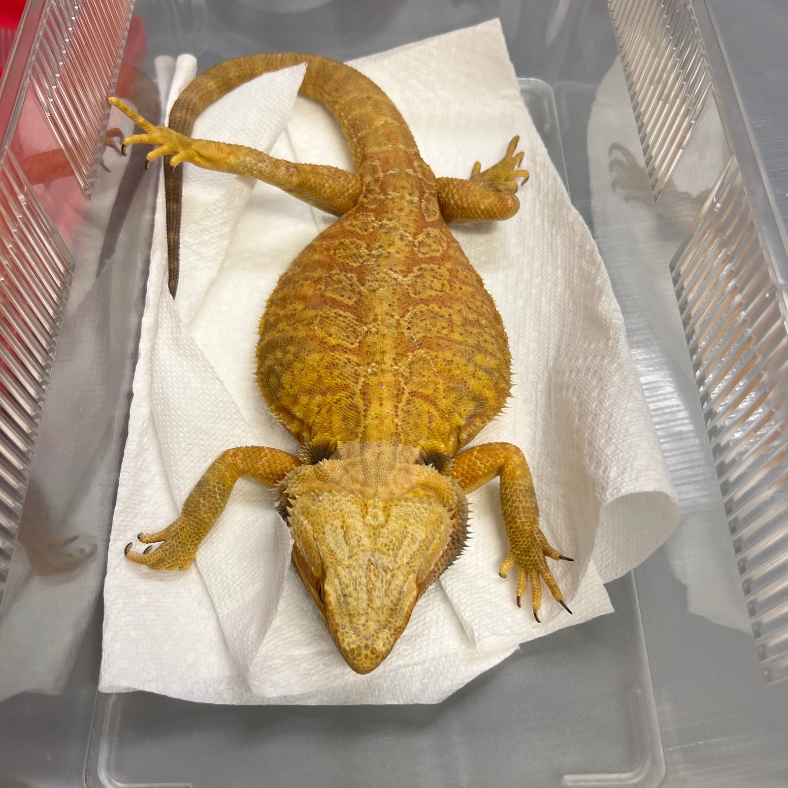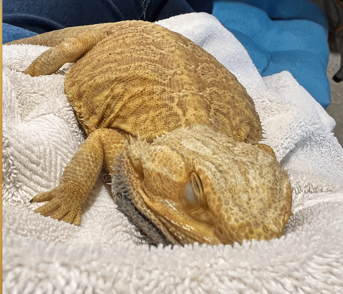 Wanda is a six-year-old leatherback bearded dragon who came to Reptile Invasion at 233 grams. As a foster mom I was called with emergency placement for Wanda. Most beardies his age weigh between 500-600 grams. Wanda was severely underweight. He was also very dehydrated. My first instinct was to make a vet appointment. Luckily we have an incredible exotic vet we trust who are an hour and a half drive away. However, we will do anything to get these critters the best care so off we went.
