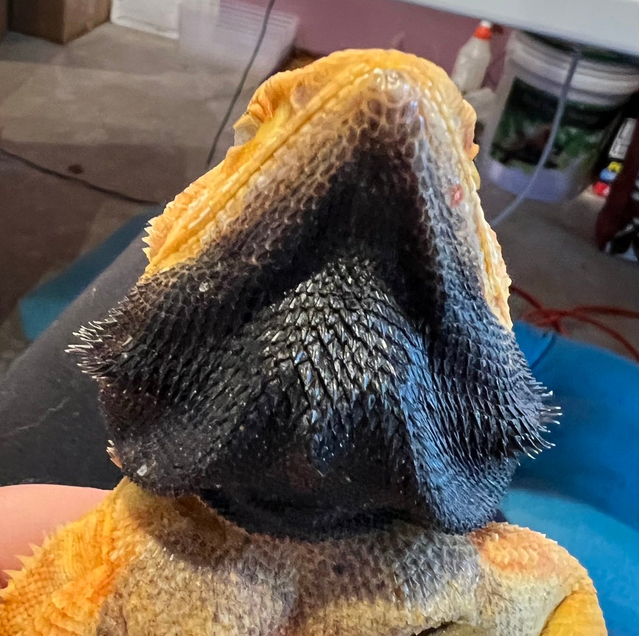 The first time I laid eyes on Wanda I knew something was wrong. This poor beardie seemed to constantly be black bearding. I had asked some questions of the rescue as to his previous home and came to find out that he was always black bearding 24/7. That was my first clue that something wasn’t right. Black bearing is when a bearded dragon’s chin and throat area turn really, really dark pretty much black. It can be a sign of stress, fear, pain, or sickness. Unfortunately, this little guy had all the above.